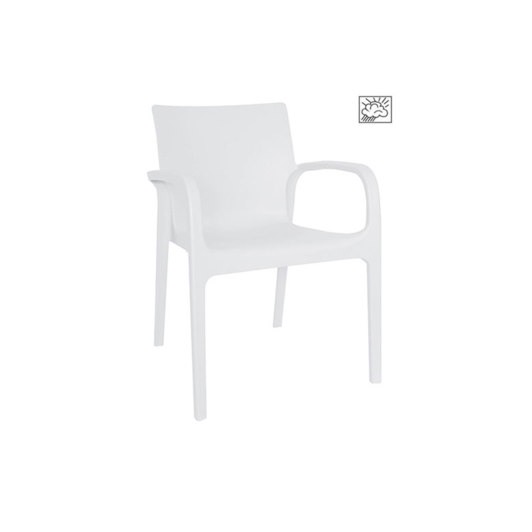 -Silla de cuatro patas en polipropileno, respaldo, asiento y patas en una sola pieza en polipropileno de alta resistencia y duración para intemperie, resistente a los rayos ultravioleta (UV) y al ambiente salino.