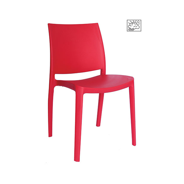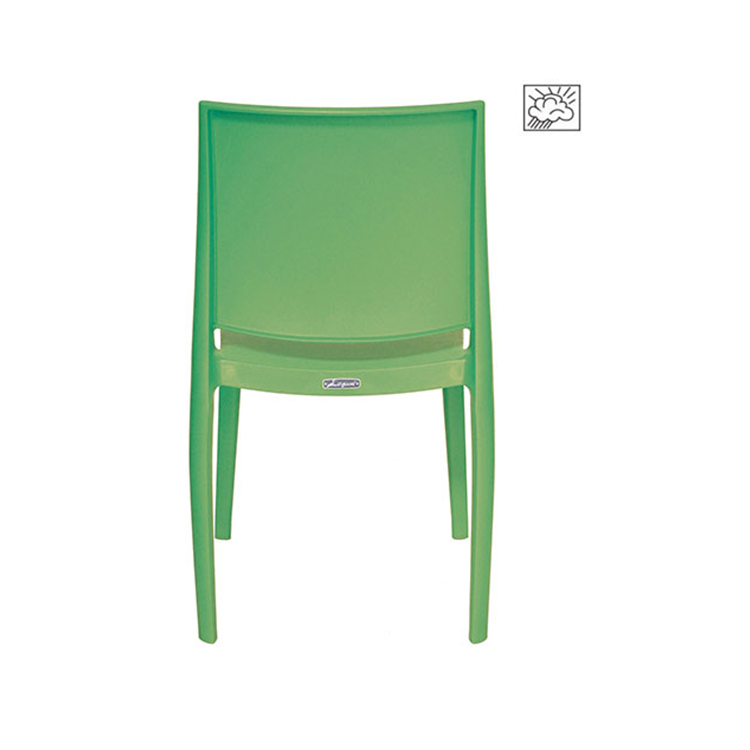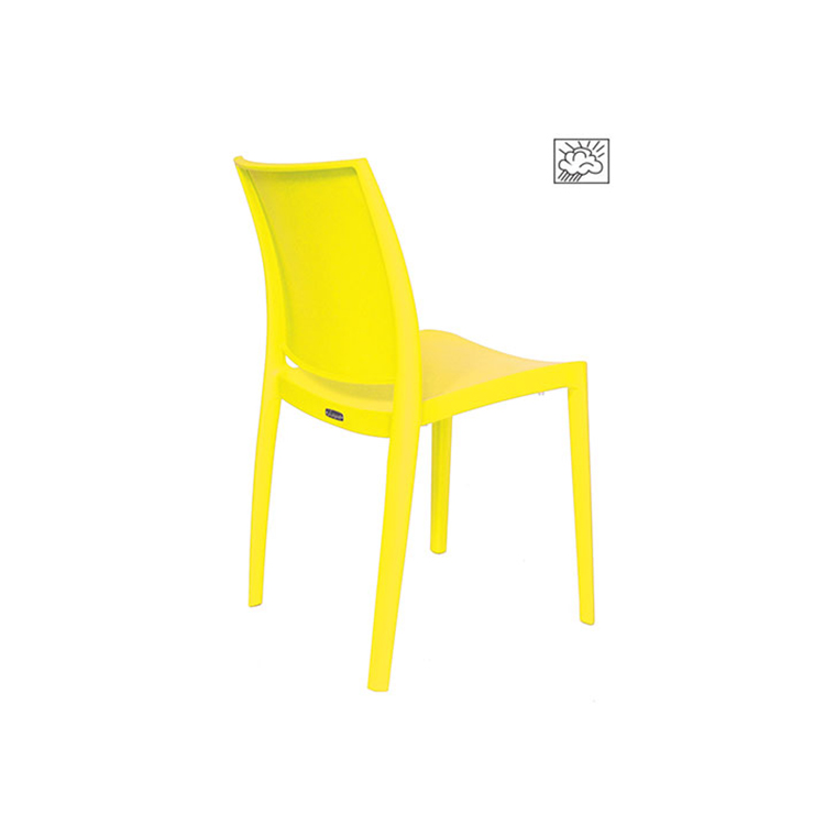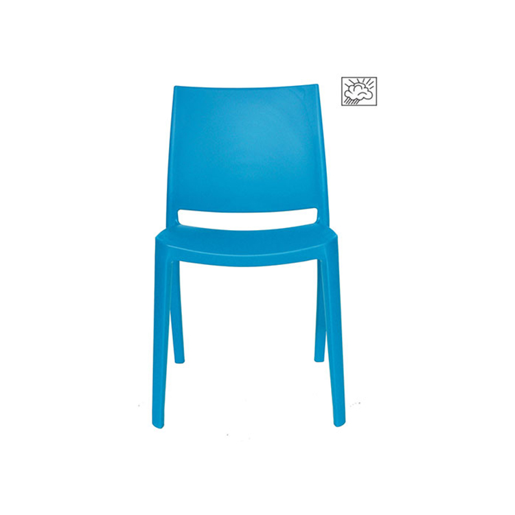 -Silla de cuatro patas, en una sóla pieza en polipropileno de alta resistencia y duración para intemperie, resistente a los rayos ultravioleta (UV) y al ambiente salino.