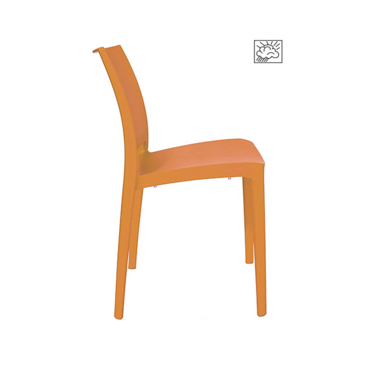 -Silla de cuatro patas, en una sóla pieza en polipropileno de alta resistencia y duración para intemperie, resistente a los rayos ultravioleta (UV) y al ambiente salino.