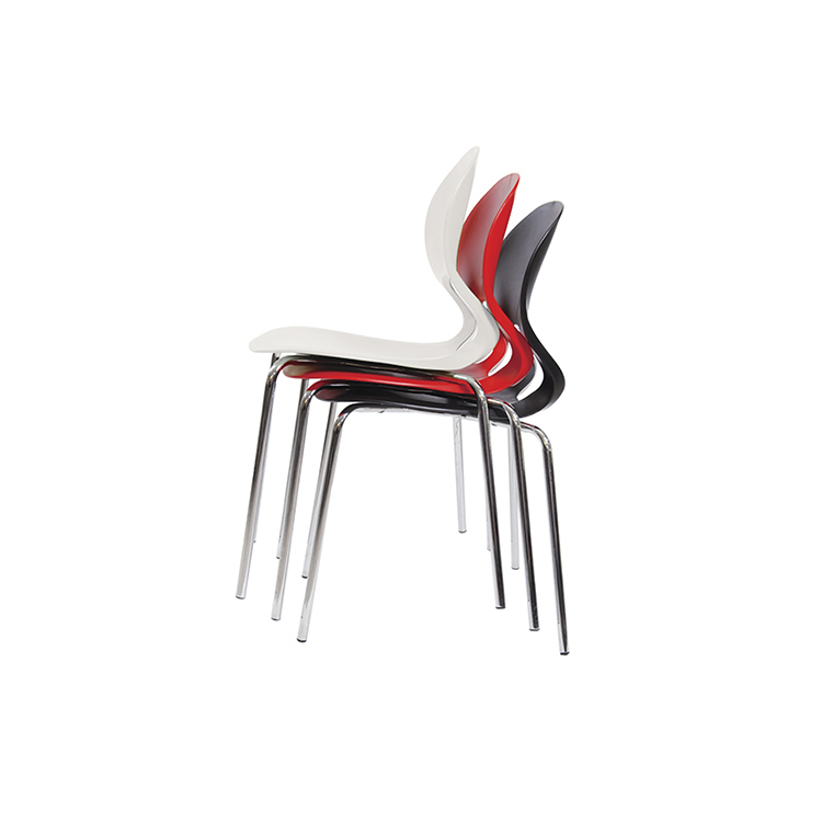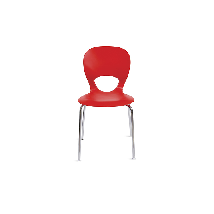 -Silla de cuatro patas, asiento y respaldo en una sóla pieza en polipropileno con estructura en cromo.