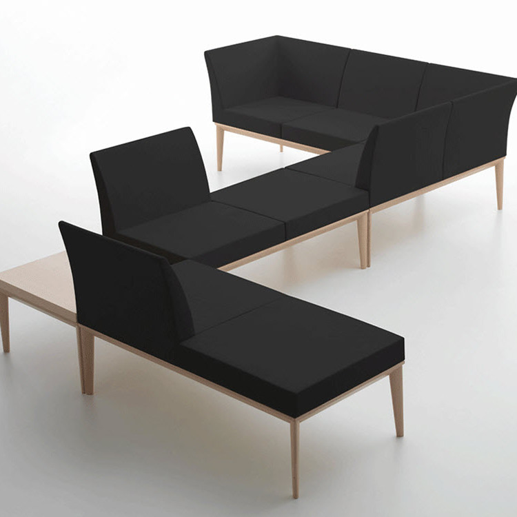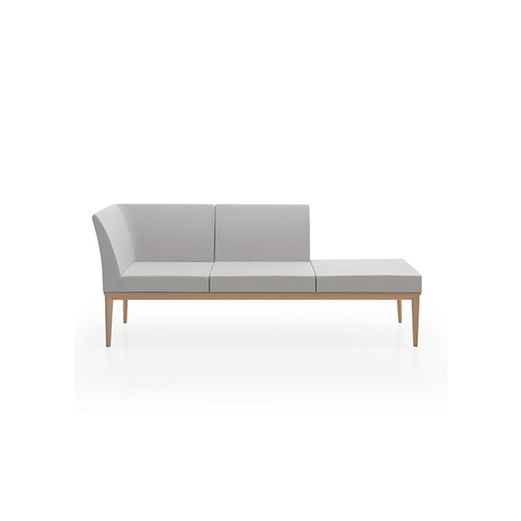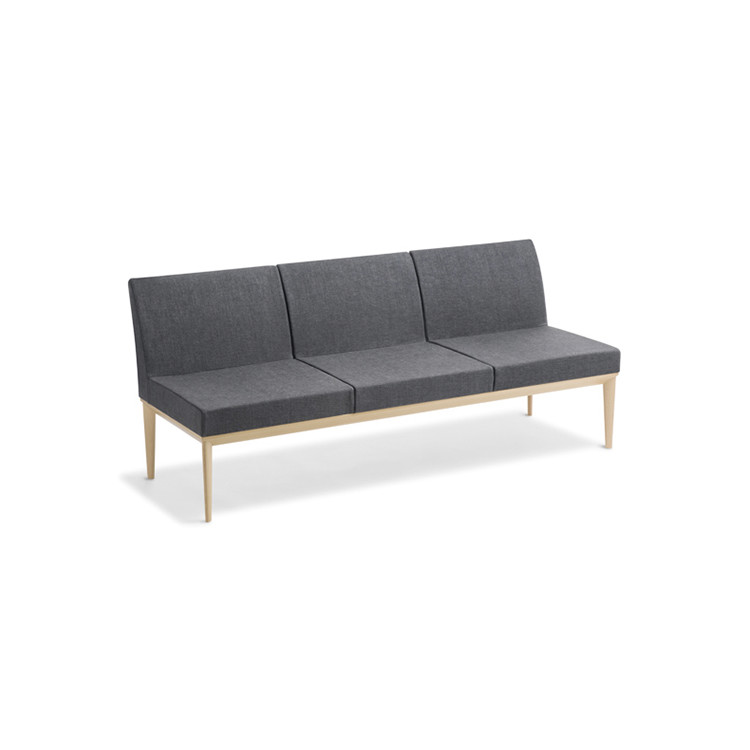 Modular con asiento en poliuretano inyectado y tapizado con estructura de acero, base de madera de haya de una, dos o tres plazas modulares.